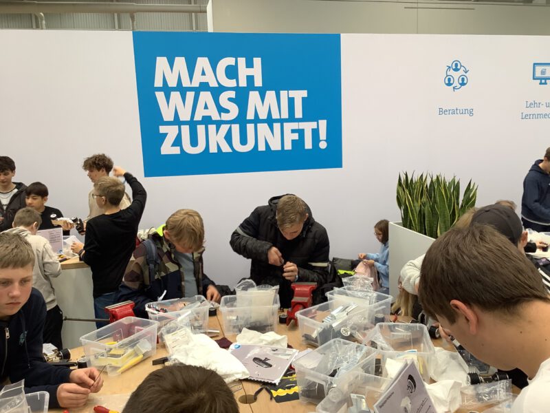Am Freitag, den 26.09.2025, konnten 25 interessierte Schülerinnen und Schüler des 9. und 10.Jahrgangs auf Einladung der Stiftung Maschinenbau die Welt der Metallbearbeitung auf der EMO-Messe in Hannover kennenlernen und eigenständig erleben: zunächst durften die Schülerinnen und Schüler verschiedene Firmen aus der Metallbearbeitungsbranche und die neuesten Technologien kennenlernen und dann in einer Prozesskette einen kleinen Rennwagen zusammenbauen. Zudem wurde das Messegelände der ehemaligen EXPO in Hannover besichtigt. Wieder einmal konnten neue spannende Horizonte im Bereich der Berufsorientierung erweitert werden!