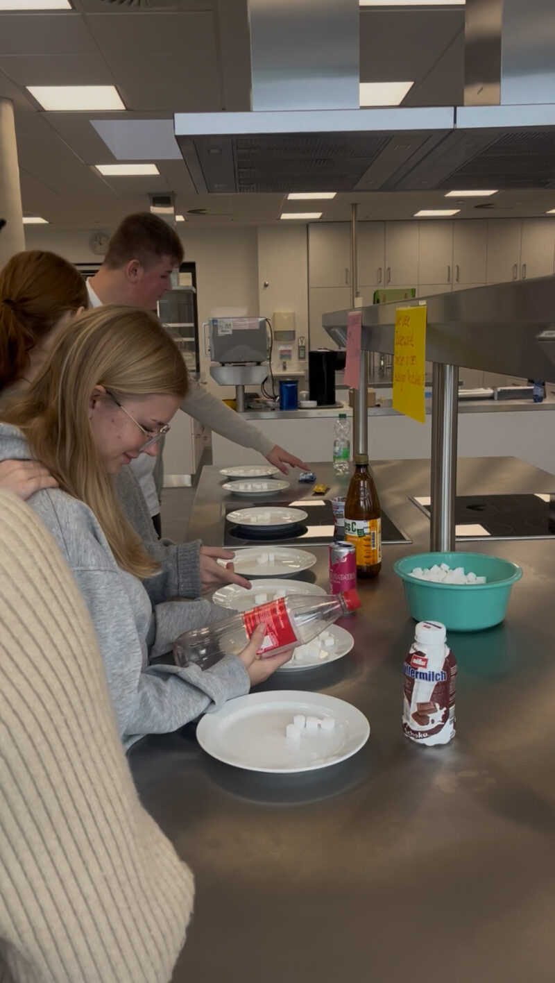 Im Haus Sarepta lernten wir anschließend verschiedene Gesundheitsberufe näher kennen. Mithilfe eines speziellen Krankenhaus-Games und unseren eigenen Avataren entdeckten wir spielerisch, wie vielfältig die Arbeit im EvKB ist. Die Workshops zu Physiotherapie und Diätassistenz machten vielen von uns besonders Spaß: Wir analysierten Lebensmittel, staunten über versteckten Zucker, lernten Warm-up-Übungen kennen und erfuhren, in welchen Bereichen Physiotherapeut:innen arbeiten.