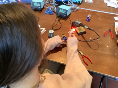 Dabei galt an jedem Unternehmensstand das Motto: „Hands on“: Die SchülerInnen hatten in Gruppen für jede von insgesamt vier Stationen je eine ganze Stunde Zeit sich mit den praktischen Aufgaben der Unternehmen auseinanderzusetzen. Es wurde programmiert, gelötet, im Kleinen und Großen geschraubt und gebaut sowie vieles mehr.
